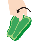 縦半分に切り、へたの部分を外側から内側へもぎ取る。